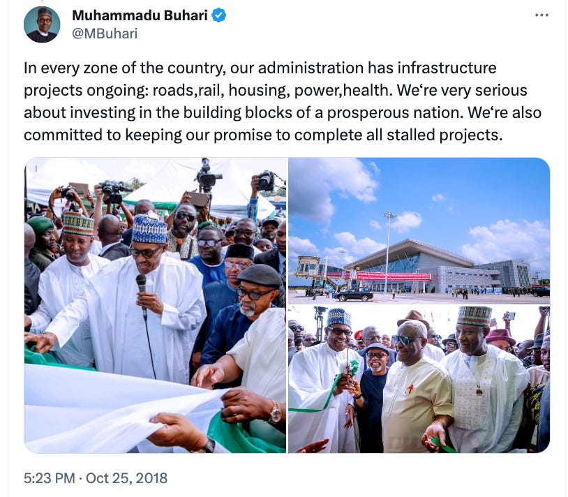 (I must make it clear that the Buhari Administration, in addition to the focus on continuity, was also big on doing its own new stuff. So it wasn’t focused exclusively on inherited stuff. Just to point that out).